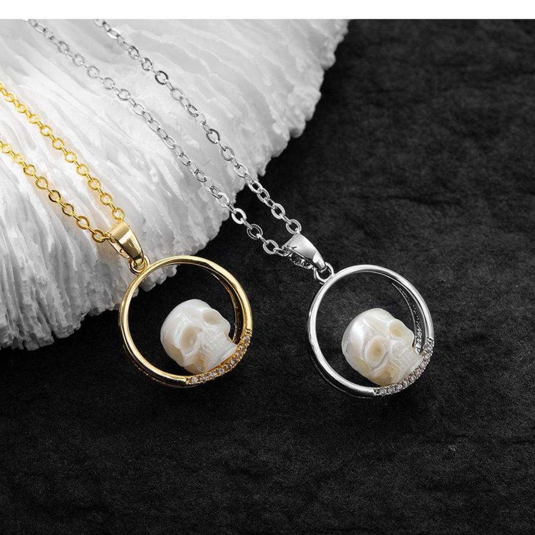 Why choose the Pearl Skull on Ring Band Pendant™ – Elegant Skull-in-Ring Design with Zircon Accents?